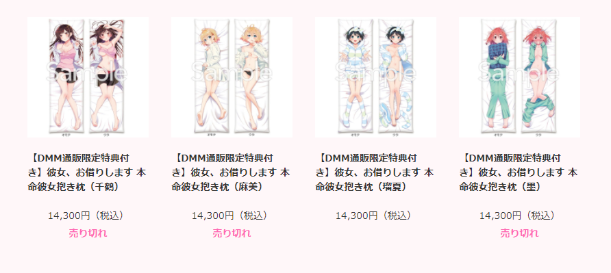 이 다키마쿠라 커버의 가격은 개당 14,300엔으로 한화 약 15만 원에 해당한다. 제법 가격이 센 편이기는 해도 보통 다키마쿠라의 평균 가격이기도 해서 솔직히 욕심을 부린다면 살 수 있는 가격이었다. 현재 DMM 홈페이지에 올라온 <여친 빌리겠습니다> 네 명의 히로인 다키마쿠라는 루카 버전을 빼고 모두 매진된 상태다.
