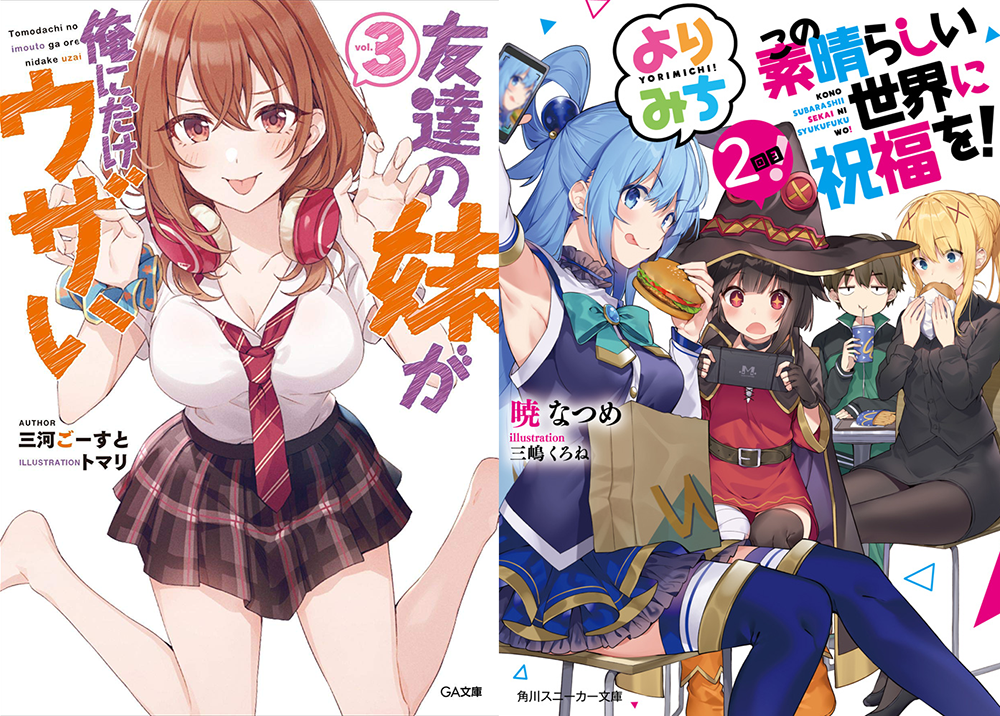 제일 먼저 이번에야말로 진짜 마지막 에피소드가 담긴 라이트 노벨 <이 멋진 세계에 축복을 요리미치 2권>과 함께 애니화가 이번에 발표난 <친구 여동생이 나한테만 짜증나게 군다 3권>, 판타지의 왕도를 그리는 <데스마치에서 시작되는 이세계 광상곡 21권>이 자리 잡았다.