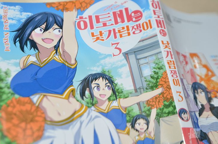 평소 재미있게 읽고 있는 대원씨아이의 러브 코미디 만화 <히토미는 낯가림쟁이> 시리즈가 지난 2월을 맞아서 3권이 발매되었다. 이번 만화 <히토미는 낯가림쟁이 3권>의 표지에는 치어리더 복장을 하고 있는 히토미와 주인공의 여동생의 카오루의 모습이 그려져 있다.