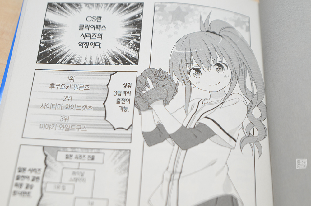 어쨌든, 타마와 레오나, 하루코 세 사람을 중심으로 야구장에 가서 야구를 즐기는 모습을 볼 수 있는 만화 <나를 야구장에 데려가줘! 2권>에서는 정규 리그가 끝난 이후, 한국으로 친다면 포스트 시즌에 해당하는 클라이맥스 시리즈(CS 시리즈)를 소화하는 모습을 볼 수가 있다. 이는 야구팬이라면 절대 놓칠 수 없는 가을 야구의 시작이었다.