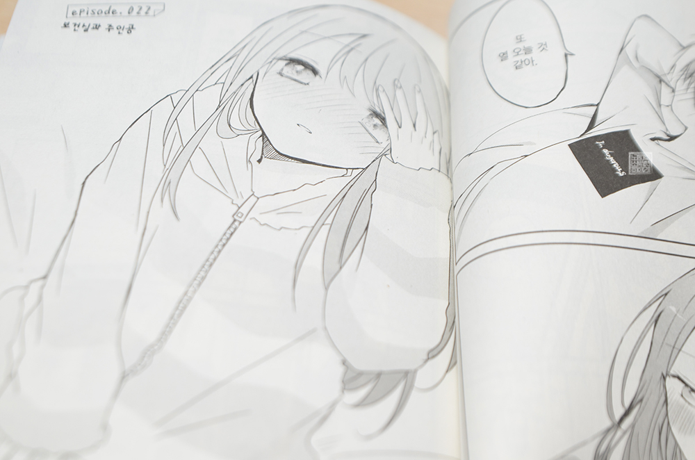 그렇게 감기에 걸린 주인공 시라이시와 이모티콘을 주고받는 이야기로 시작한 만화 <쿠보 양은 나를 내버려두지 않아 3권>은 살짝 열이 오른 쿠보를 보건실에 데려다주는 시라이시의 모습을 비롯해 다양한 모습을 볼 수 있다. 개인적으로 보기 좋았던 여러 장면 중 하나는 역시 같이 우산을 쓰고 가는 장면일까?