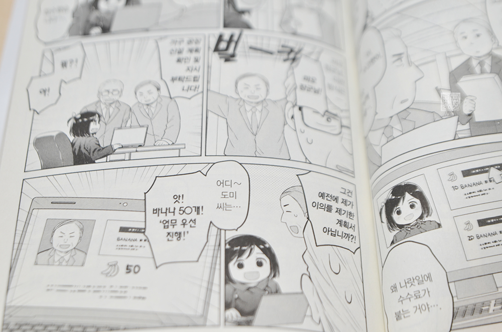 이번에 읽어볼 수 있었던 만화 <아~ 우리들의 먀오 장군님 3권>에서 먀오는 자신에게 주어지는 업무의 강도와 우선순위에 따라 바나나 개수로 수수료를 지불하게 하는 엉뚱한 일을 벌이기도 하고, 미국으로 추정되는 국가의 대통령을 만나 콜도나의 외교 방안과 정책 방안에 대해 회담을 갖는 모습이 그려지기도 한다.