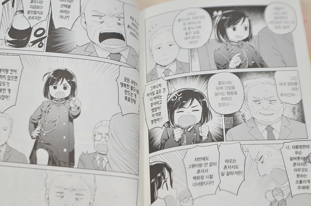 평소 우리가 뉴스를 통해 볼 수 있는 딱딱한 정상 회담을 모에화 한다면 바로 저런 분위기이지 않을까 싶다. 정말 생각지도 못한 여러 모습과 소재를 활용해 '이게 뭐야 ㅋㅋㅋ'라며 무심코 웃음을 터뜨리게 했던 만화 <아~ 우리들의 먀오 장군님 3권>. 자세한 건 직접 만화를 구매해서 읽어볼 수 있기를 바란다.