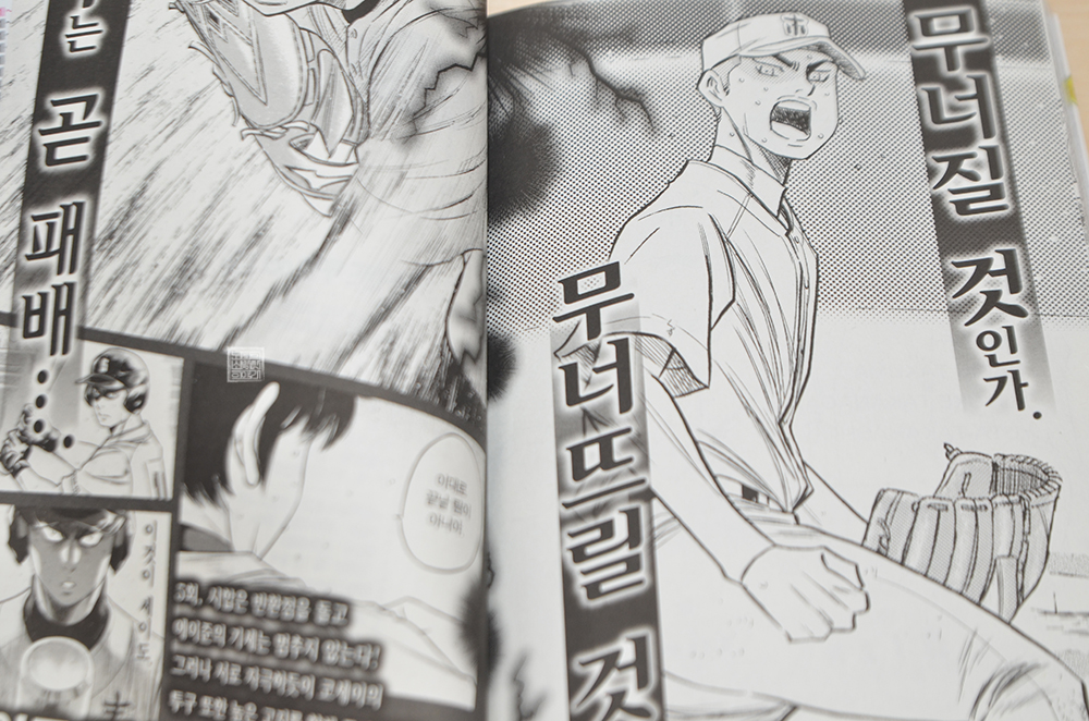 정말이지 현실에서 NC 다이노스 야구 중계를 볼 때와 비교조차 할 수 없을 정도로 시합에서 펼쳐지는 내용에 집중해서 만화 <다이아몬드 에이스 ACT 2 26권>을 읽은 덕분에 얼마나 즐거웠는지 모른다. 만화 <다이아몬드 에이스 ACT 2 26권>에서 읽어볼 수 있는 세이도 고교와 이치다이산 고교의 시합의 퀄리티는 말할 필요가 없었다.