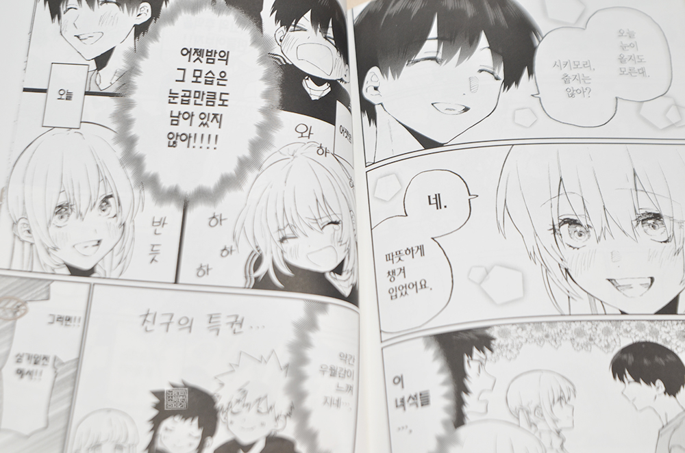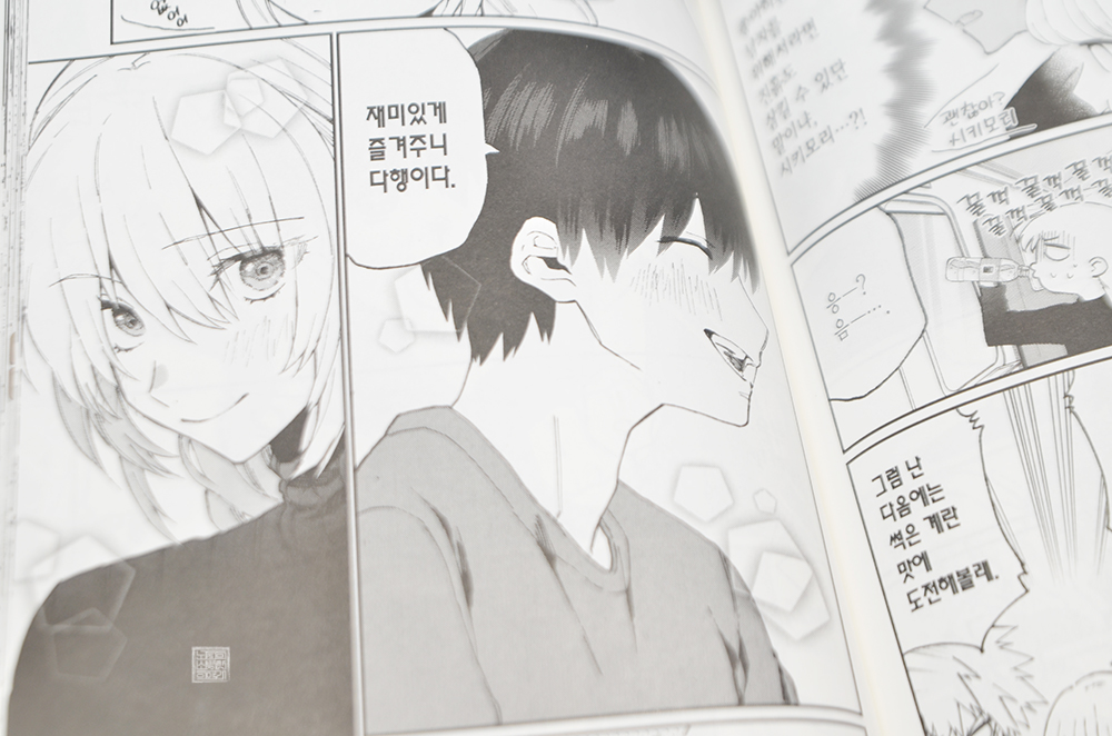 그 모든 이야기는 이번 9권에서 읽어볼 수 없었다. 만화 <귀엽기만 한 게 아닌 시키모리 양 9권>이 그리는 이야기는 수학여행의 막이 올라 이즈미와 모두가 신칸센을 타고 이동하면서 벌어지는 소소한 즐거운 일상, 그리고 수학여행지에 도착해 하룻밤 동안 들뜬 분위기 속에서 보내는 모두의 시간이 평화롭게 그려져 있었다.