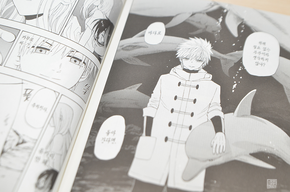 그로 인해서 지난 만화 <작열의 니라이 카나이 1권>은 조금 변변찮은 작품이라고 생각하면서 읽었다면, 만화 <작열의 니라이 카나이 2권>에서는 돌고래를 비롯해 자칭 '하드보일러' 만화라고 하는 이 작품의 설정을 이해하면서 빌런인 바다 교단과 관련된 흥미로운 떡밥이 던져진 덕분에 나름 재미있게 읽을 수 있었다고 생각한다.