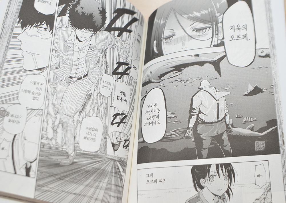 일상에서 벗어난 비일상이 일상이 되어 있는 섬 아네가시마에서 이형의 존재들이 얽힌 사건들을 그리고 있는 만화 <작열의 니라이 카나이> 시리즈의 제2권이 지난 2022년 1월을 맞아 한국에 정식 발매되었다. 이번 2권의 여는 에피소드에서는 바다의 조폭으로 불리는 한 조직의 일원이 오르페우스에게 시비를 거는 사건이 그려진다.