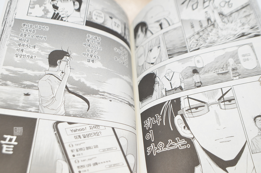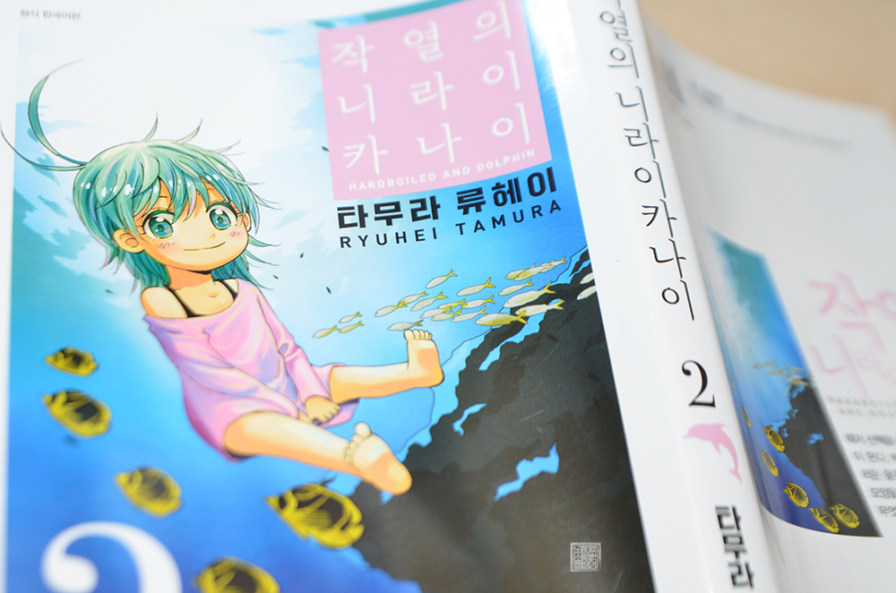 그로 인해서 지난 만화 <작열의 니라이 카나이 1권>은 조금 변변찮은 작품이라고 생각하면서 읽었다면, 만화 <작열의 니라이 카나이 2권>에서는 돌고래를 비롯해 자칭 '하드보일러' 만화라고 하는 이 작품의 설정을 이해하면서 빌런인 바다 교단과 관련된 흥미로운 떡밥이 던져진 덕분에 나름 재미있게 읽을 수 있었다고 생각한다.