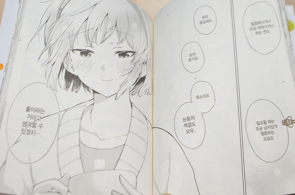 여동생 시오리가 등장한 덕분에 그려졌던 장면 중에ㅂ서 가장 좋았던 건 메이카가 좋아하는 마음에 대해 설명하는 장면이다. 카페에서 함께 차를 마시면서 메이카가 누군가를 좋아하는 마음에 대해 말할 때 넌지시 자신이 좋아하는 타카시로를 떠올리면서 이야기를 했었는데, 여기서 읽어볼 수 있는 대사와 그림은 정말 감탄만이 나왔다. (웃음)