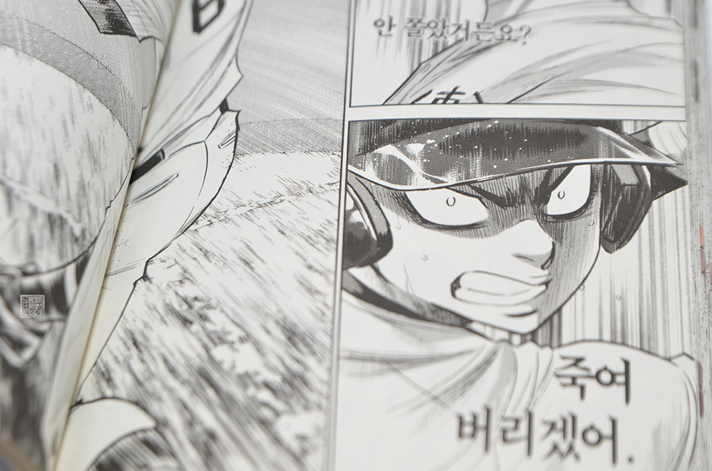 단순히 전개가 긴장을 늦출 수 없는 전개라는 점도 있지만, 만화 <다이아몬드 에이스 ACT 2 27권>에서 각 인물에 초점을 맞춰서 페이지를 구성한 방식이 우리가 절대적으로 만화에 몰입할 수밖에 해주었다. 역시 스포츠 만화는 이렇게 이야기 전개만 아니라 페이지의 구성이 함께 잘 어우러졌을 때 최고의 작품이 되지 않나 싶다.