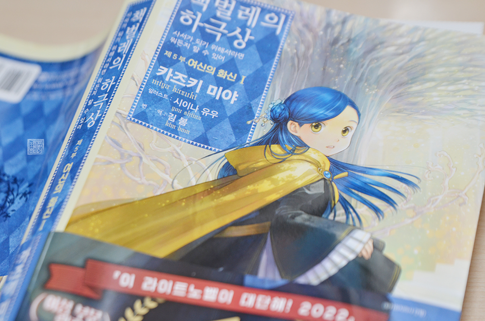 하지만 라이트 노벨 <책벌레의 하극상> 시리즈를 한국에서 정식 발매하고 있는 출판사는 최소 4개월에서 최대 8개월의 간격을 가지면서 다음 권을 발매할 정도로 그 속도가 너무나 느리다. 지난 <제4부 귀족원의 자칭 도서위원 9권>이 나오고 나서 5개월이 있다가 이번 <제5부 여신의 화신 1권>이 발매된 것을 생각하면 앞이 깜깜하다.