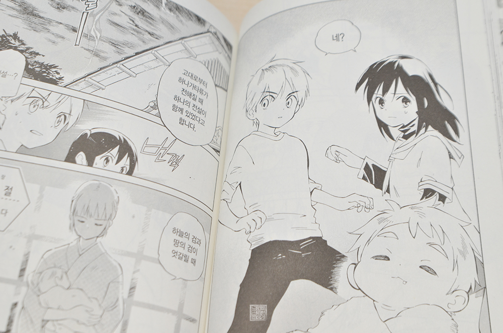 하지만 어디까지 가족의 한 지붕 생활이 메인이기 때문에 판타지 배틀을 그리면서도 결국은 아기를 지키면서 각자의 길을 향해 나아가는 두 사람의 이야기가 메인이라고 생각한다. 아직 만화 <손바닥 창세기 1권>만을 읽고 작품에 대해 적확한 판단을 하는 데에는 어려움이 있겠지만, 그래도 흡입력이 괜찮은 판타지가 섞인 일상 만화라고 생각한다.