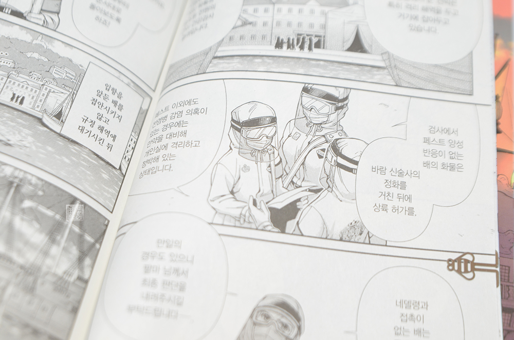 오는 2022년을 맞아 애니메이션 방영이 확정되어 있는 라이트 노벨을 원작으로 하는 만화 <이세계 약국 6권>이 4월을 맞아 한국에 정식 발매되었다. 이번 만화 <이세계 약국 6권>은 지난 5권에서 이어지는 흑사병의 전염을 막기 위해서 주인공 팔마가 자신이 꾸린 팀과 함께 항구에 입항하는 배의 검역을 하는 장면으로 시작한다.