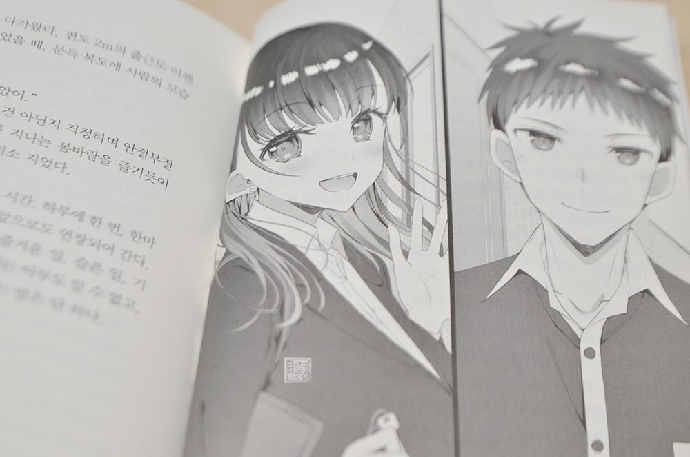 그중에서도 <월 500을 받아도 사는 보람이 없는 옆집 누나에게 300에 고용돼서 어서 와 라고 말하는 이 즐겁다 3권>에서 볼 수 있는 컬러 일러스트와 내부 흑백 일러스트가 너무나 예쁘게 잘 그려져 있다 보니 감탄이 저절로 나왔다. 이야기로 읽어볼 수 있는 미오도 정말 매력적이지만, 일러스트가 너무 예쁘다 보니 나도 모르게 입이 귀에 걸렸다.