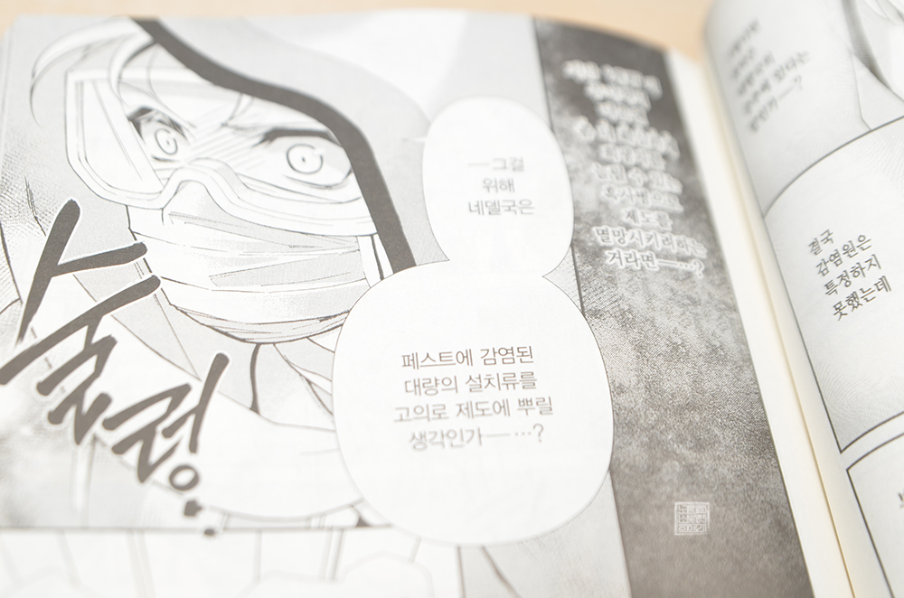 하지만 아무리 매뉴얼이 잘 갖추어져 있고, 사람들이 발 빠르게 매뉴얼에 따라 움직인다고 해도 언제나 '변수'라는 것은 존재하기 마련이다. 만화 <이세계 약국 7권>에서 그 변수는 흑사병 바이러스를 연구하고 개발해 제도를 위협한 악랄한 약사가 바로 그 변수로, 그는 네델에서 이미 자신의 지식을 이용해 나라를 커다란 위협에 빠뜨린 상태였다.