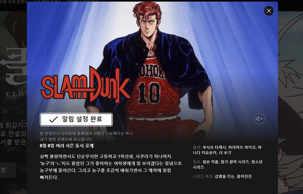 평소 농구 만화를 좋아해도 고전 작품에 속하는 <슬램덩크>를 본 적이 없다면, 넷플릭스에서 오는 9월 8일(목)을 맞아 공개될 애니메이션 <슬램덩크> 시리즈를 절대 놓치지 말도록 하자. 국내 더빙판도 나쁘지는 않았다고 생각해도 역시 제대로 애니메이션 <슬램덩크>를 감상할 수 있는 건 일본 자막판이라고 생각한다.
