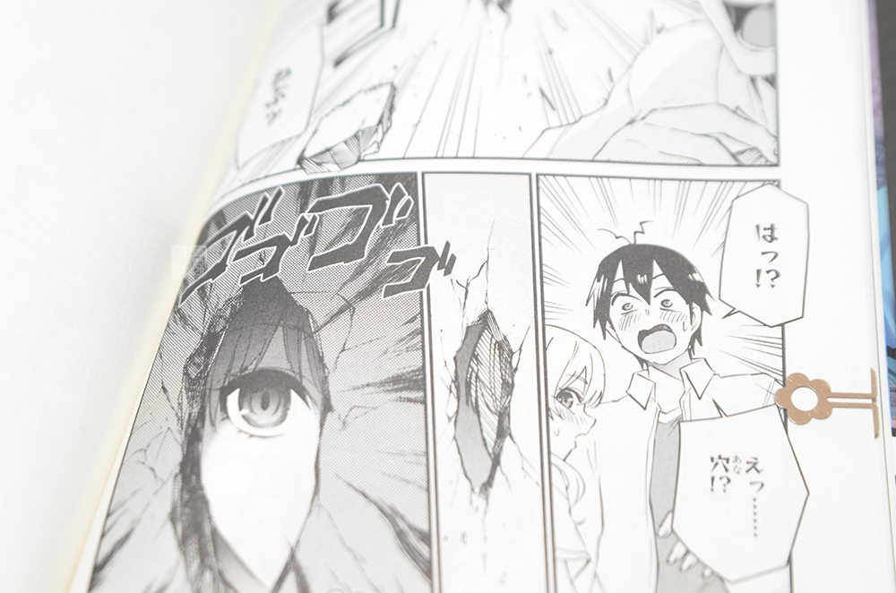 바로, 위 사진에서 볼 수 있듯이 옆방과 쥰이치의 방 사이에 구멍이 생기면서 분위기는 완전히 초를 치고 말았다. 만약 이게 만화 <엿보기 구멍>이라면 주인공과 옆방의 주인인 고 코마치 키요와 이렇고 저런 위험한 이벤트가 벌어졌겠지만, 이 만화 <첫 갸루> 시리즈는 절대 그런 작품이 아니기에 어디까지 이웃 간의 해프닝으로 넘어가게 된다.
