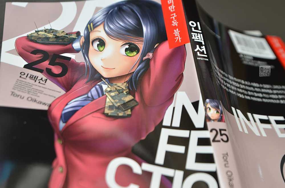 사츠키는 한사코 "후퇴!! 후퇴 하세요―!!"라며 사태를 수습하려고 하지만, 차례차례 눈앞에 벌어지는 일들은 사츠키만이 아니라 모두를 절망 속으로 불어넣고 있었다. 지난 만화 <인펙션 24권>에서는 보균자 사태를 해결할 수 있는 방법을 하루키가 알게 되어 희망적인 모습을 비추었지만, 25권은 희망이 절망으로 점철되어 가고 있었다.