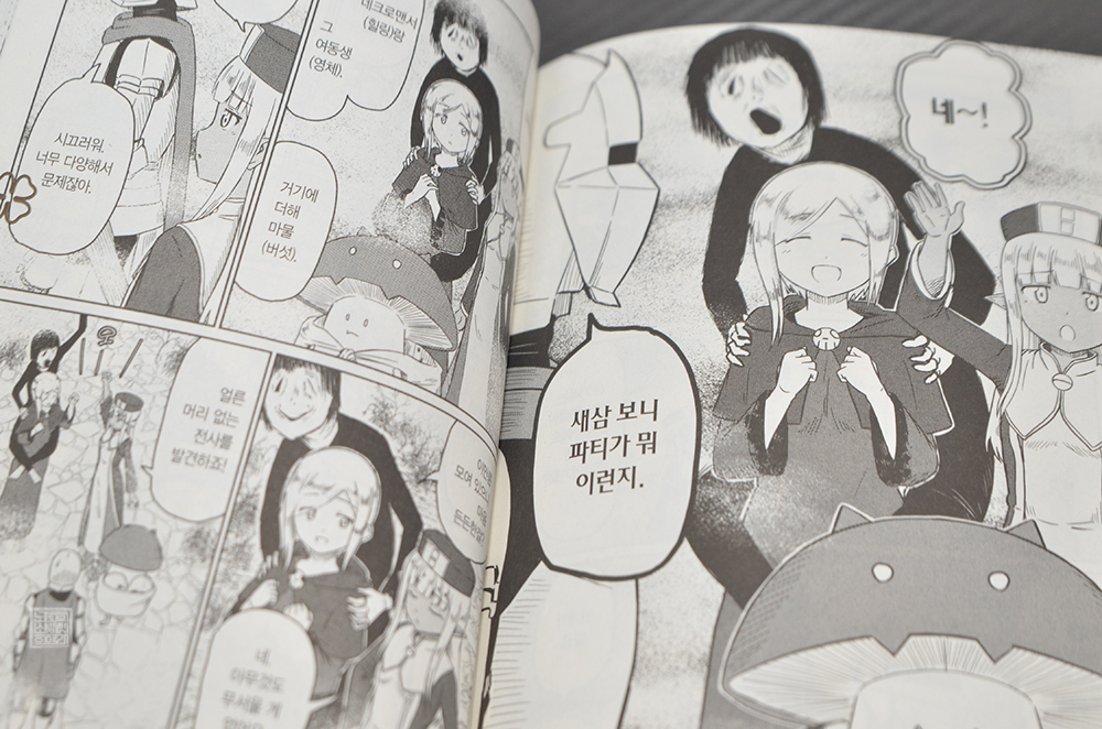 알고 보니 그 마왕은 진짜 마왕이 아니라 '마왕 오디션'에 합격해 차기 마왕을 노리는 마왕 수습생이었다. 만화 <이 힐러 귀찮아 5권>은 살짝 이렇게 핀트가 나간 듯한 설정과 전개가 책을 읽는 독자에게 생각지 못한 웃음을 주는 만화다. 그 이외에도 우리가 잘 아는 '금도끼, 은도끼' 이야기를 활용한 이야기를 그리면서 무심코 웃음을 터뜨리게 했다.
