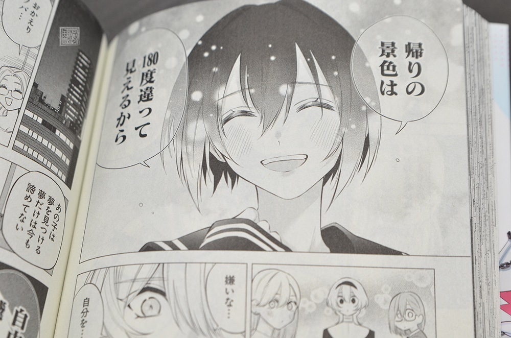 하지만 만화 <2.5차원의 유혹 15권>에서 볼 수 있는 츠바키가 만난 만연의 동료들은 달랐다. 모두 하나부터 열까지 자신이 좋아하는 것에 대해 순수하게 좋아하는 마음을 갖고 있었고, 고민이 있으면 이야기를 들어주면서 함께 고민해줄 수 있는 너무나 좋은 사람들이었다. 그런 만연 멤버들이기에 츠바키가 이곳을 찾은 건 당연한 일이었다.