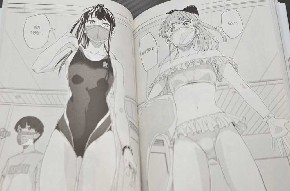 그 부분에 대해서도 대단히 흥미를 가질 수밖에 없었던 만화 <뉴노멀 2권>이었지만, 2권에서는 다른 부분에서도 눈을 뗄 수 없는 장면이 그려지기도 했다. 바로, 남자 주인공을 둘러싸고 팽팽한(아직은 그 정도는 아니지만) 기 싸움을 하고 있는 나츠키와 에리카 두 사람의 모습이다. 두 사람은 주인공과 함께 셋이서 전용 수영장을 찾게 되었다.