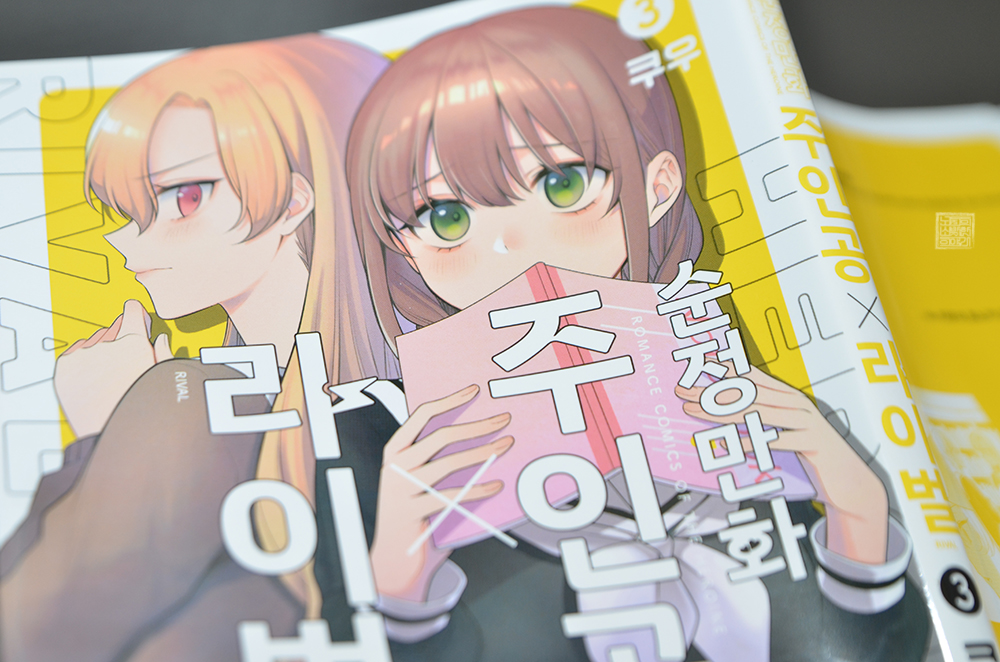 상당히 개성적인 캐릭터를 통해 매력적인 이야기를 그리고 있는 만화 <순정만화 주인공X라이벌 3권>을 오늘 읽었다. 이 만화는 주인공과 라이벌이 한 명의 남성을 두고 다투는 주연 여자 주인공과 라이벌 여자 캐릭터의 대립 구도가 아니고, 한 명의 남성에게 흥미를 품고 있는 여자 주인공을 좋아하는 라이벌 여자 캐릭터의 구도를 갖고 있다.
