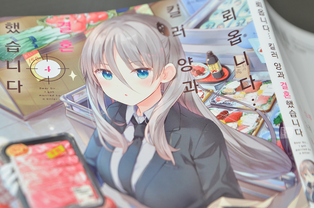 신혼부부 생활을 하는 남자 주인공과 여자 주인공 두 사람의 꽁냥꽁냥을 즐길 수 있는 만화 <아뢰옵니다 킬러 양과 결혼했습니다> 시리즈의 제4권이 마침내 한국에 정식 발매되었다. 만화 <아뢰옵니다 킬러 양과 결혼했습니다 4권>의 표지를 본다면 추운 겨울을 맞아 전골이라도 할 목적으로 소고기를 구매하는 듯한 세츠나의 모습이 그려져 있다.