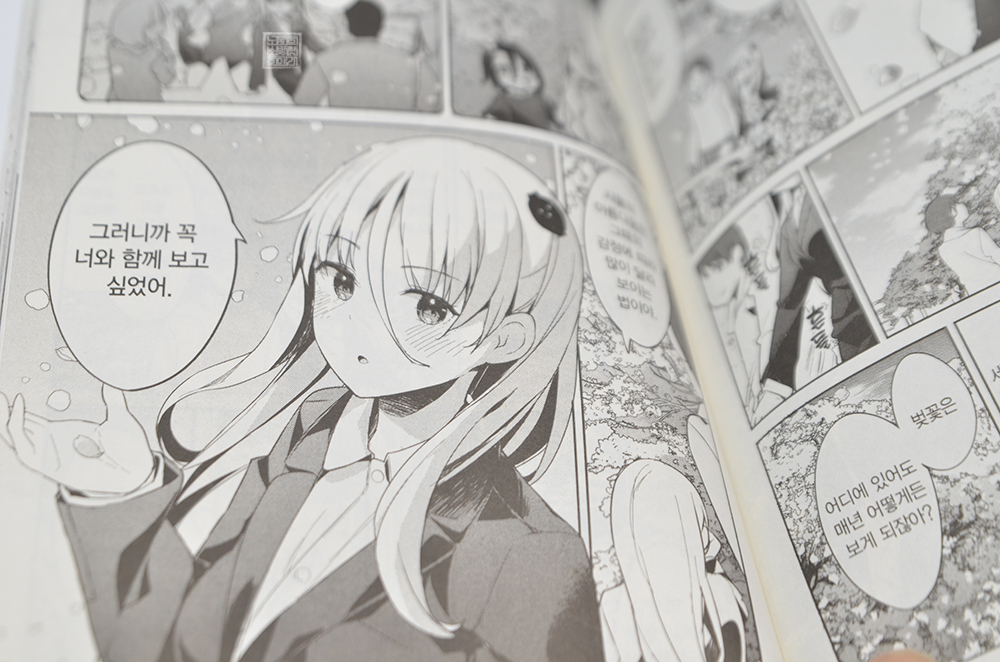 새롭게 이사를 오면서 이웃 사촌이 된 귀여운 꼬마 숙녀의 등장부터 시작해 감기에 걸린 세츠나의 모습을 볼 수 있는 만화 <아뢰옵니다 킬러 양과 결혼했습니다 4권>에서 개인적으로 가장 좋았던 장면은 집 앞 공원에 핀 벚나무의 벚꽃을 보러 간 장면이다. 역시 봄을 맞아 열리는 일본의 벚꽃놀이가 지닌 아름다움은 이야기에 빠질 수 없는 법이다.