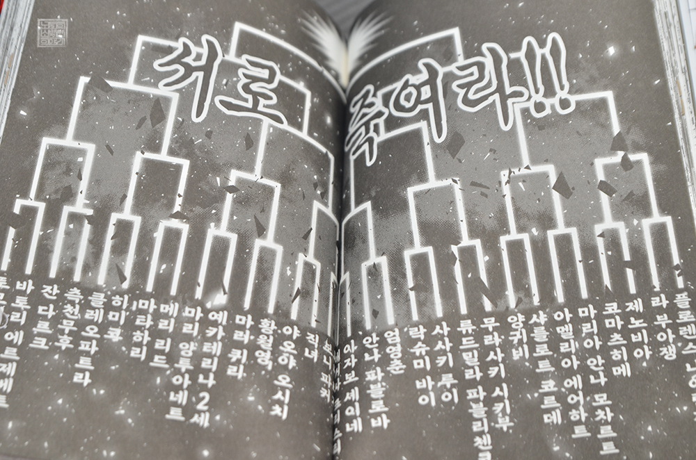 이번에 대원씨아이에서 아주 흥미롭게 읽어볼 수 있는 만화 한 권이 한국에 정식 발매되었다. 그 만화의 제목은 사진으로 볼 수 있는 '마녀대전'으로, 제목 그대로 '마녀'라는 수식어로 불리는 인물들이 목숨을 건 싸움을 그리는 만화다. 이미 오타쿠들 사이에서는 <마마마>라는 작품을 통해서 마법 소녀들이 싸우는 데스 게임은 상당히 익숙하다.
