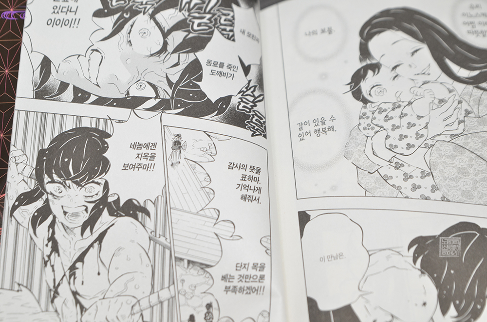질긴 악연의 연을 끊기 위해 이를 악무는 이노스케와 카나오 두 사람은 상현 2 도우마를 상대로 어떻게 승리하게 될지는 다음 만화 <귀멸의 칼날 19권>을 읽어볼 수 있도록 하자. 역시 세상에는 사연 없는 사람이 하나도 없다. (웃음)