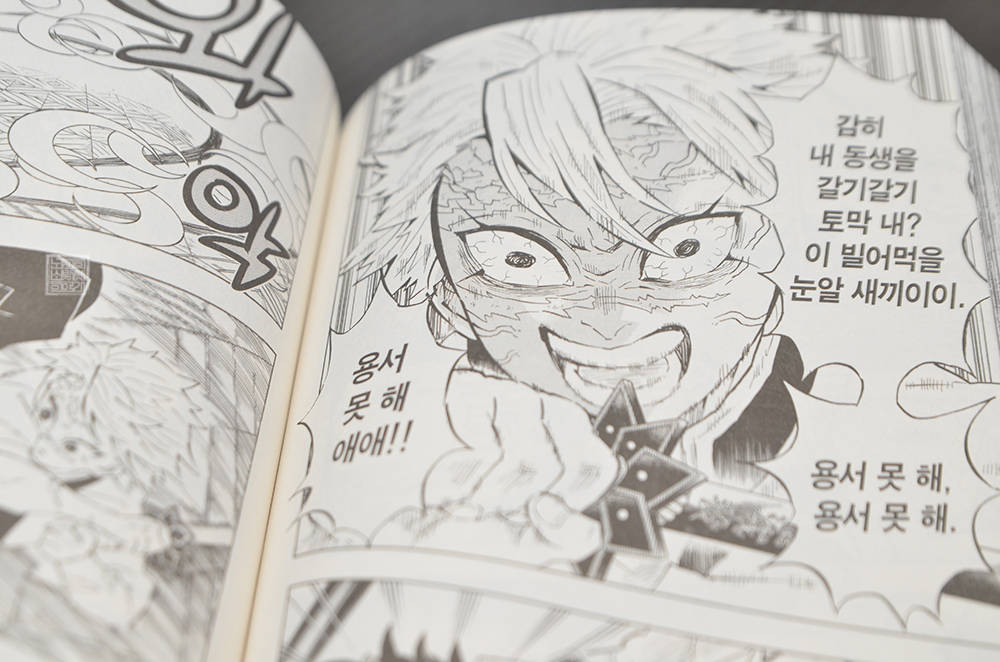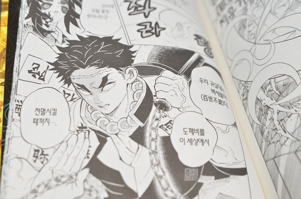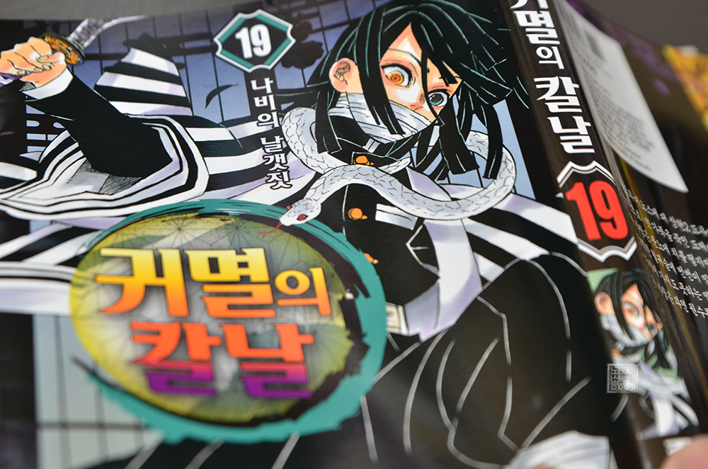 만화 <귀멸의 칼날 19권>은 지난 18권에 이어서 도우마를 마주하고 있는 이노스케와 카나오 두 사람의 위기로 막을 올린다. 이노스케는 자신이 가지고 있는 육감을 이용해서 도우마의 기술을 피하면서 잘 대응하고 있었지만, 도우마가 보여주는 혈귀술에 제대로 된 반격을 넣지 못해 초조한 상태에서 좀처럼 흥분을 가라앉히지 못하고 있었다.
