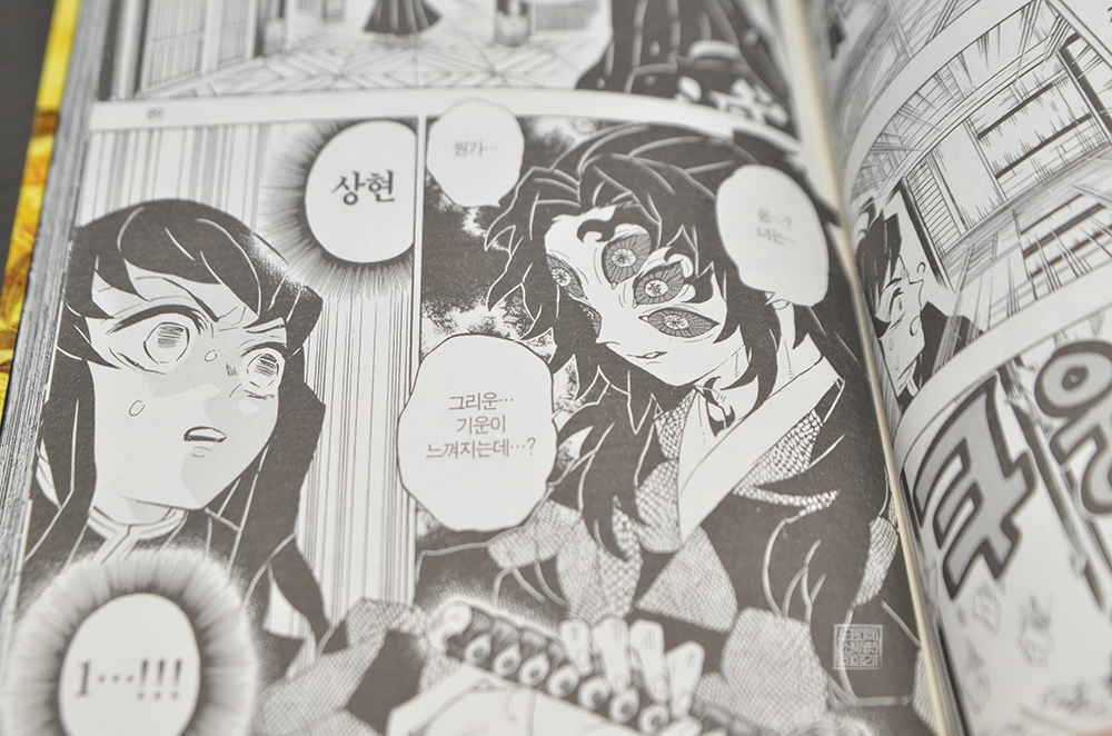 너무나 압도적인 기량을 가지고 있는 상현 1 오니를 상대로 토키토, 히메지마, 시나즈가와는 어떤 싸움을 펼치게 될까? 시노부의 말대로 상현 한 명은 주 세 명의 기량에 해당한다고 생각한다면 이길 수는 있을 것 같지만, 절대 쉽게 이길 수 있을 것으로 생각되지 않는다. 그 자세한 이야기는 다음 만화 <귀멸의 칼날 20권>을 읽어볼 수 있도록 하자.