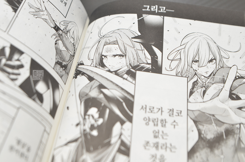 바토리와 토모에 두 사람의 싸움은 지난 1권에서 토모에의 일격으로 상황이 끝났다고 생각했는데, 만화 <마녀대전 2권>에서는 조금 더 두 사람의 싸움을 지켜볼 수 있었다. 지난 1권이 바토리를 중심으로 그녀가 가진 욕망의 출발점을 따라갔다면, 이번 2권에서는 '토모에 고젠'이 가슴에 품은 '정의'라는 이름을 지닌 욕망의 출발점을 따라갔다.