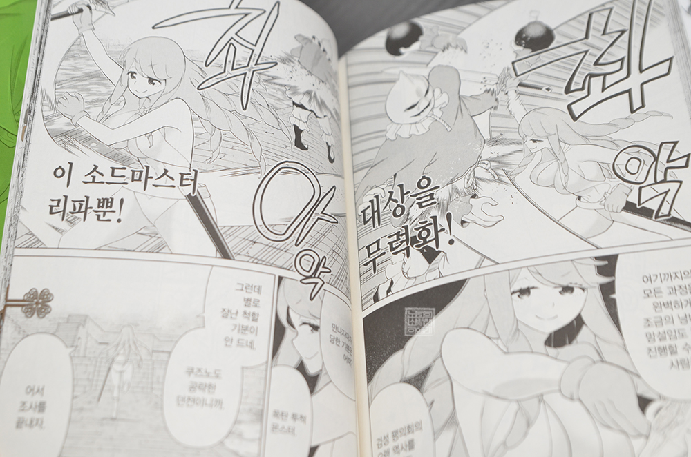 여전히 오프 쇼어에서 벌어지는 차기 지도자(왕)를 선정하기 위한 발리 볼 대회를 다루고 있는 만화 <시간 정지 용사 9권>은 압도적으로 어둠의 자들이 유리한 상황을 뒤집을 방법을 찾는 주인공의 모습이 그려져 있다. 그가 방법을 고민하고 있을 때 옆에서 누군가 딴죽을 건다면 시간 정지 능력을 활용해 당기기 벌을 주는 모습은 여전히 재밌었다.