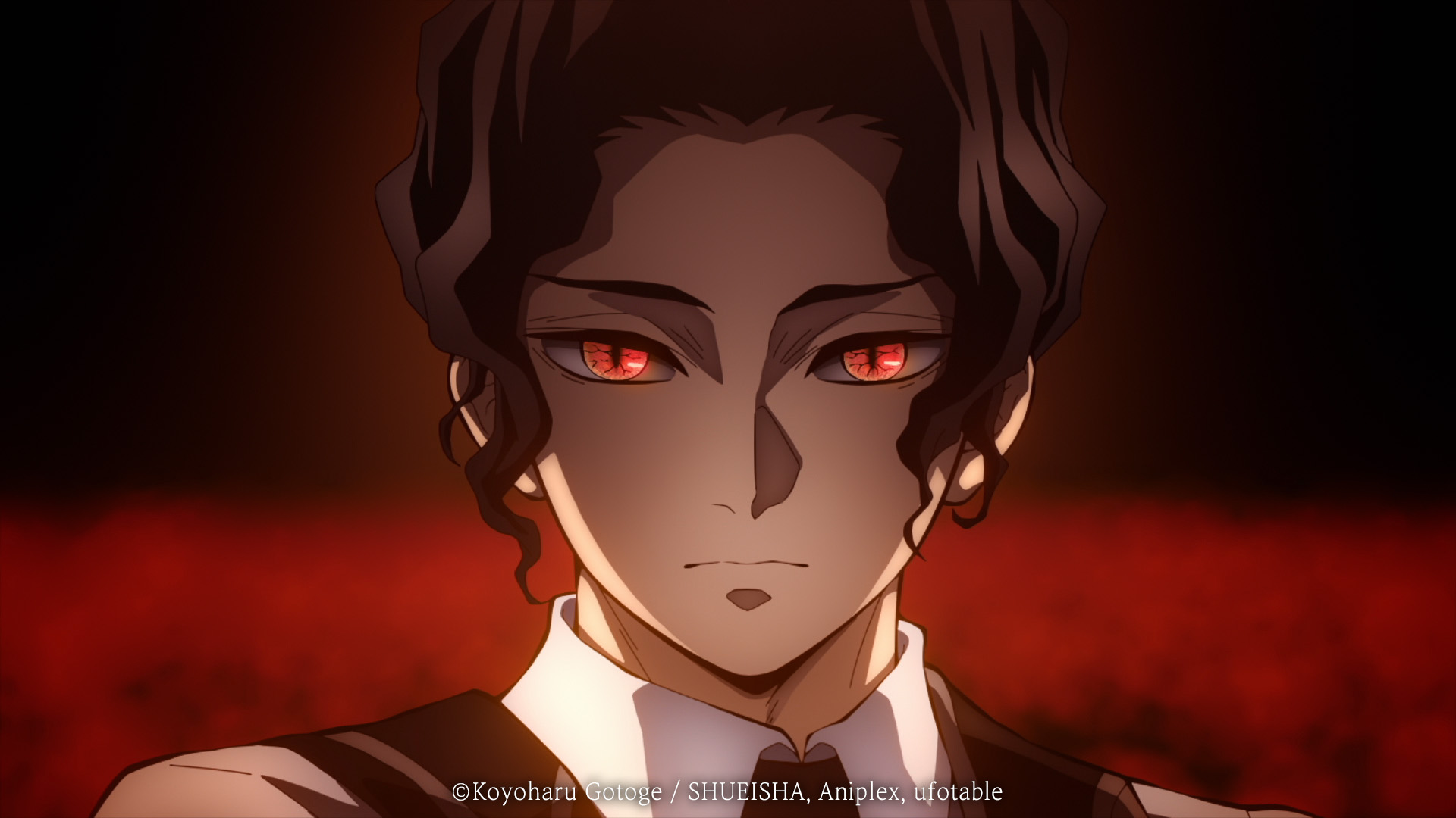 애니메이션을 보면서 무한성을 이렇게 묘사할 수 있는 건 역시 유포터블이라 가능한 묘사였다고 생각한다. 과거 애니메이션 <페이트 스테이 나이트> 시리즈를 애니메이션 극장판으로 보았을 때의 그 전율이 다시금 느껴진 순간이었다. 무잔의 무한성에서 무서울 정도의 존재감을 자랑한 상현 1 고쿠시보를 비롯해 모두의 모습은 감탄이 저절로 나왔다.