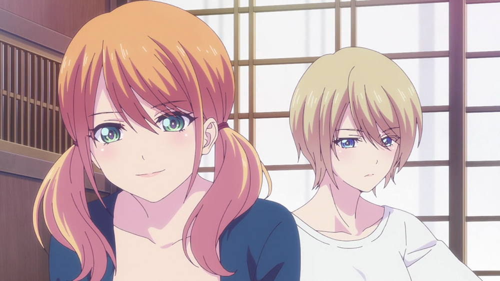 애니메이션 <여신의 카페테라스 1화>는 하렘 러브 코미디 작품답게 주인공과 히로인들이 럭키 스케베 이벤트로 부딪히면서 첫인사를 나누는 모습이 그려졌다. 다소 처음에는 서로 얼굴을 붉히면서 "나가!" "이 변태!" 같은 말을 주고받으면서 싸움이 일어나고 말았지만, 이 모든 것은 모두 함께 가게를 운영해 나가기 위한 포석에 불과했다. (웃음)
