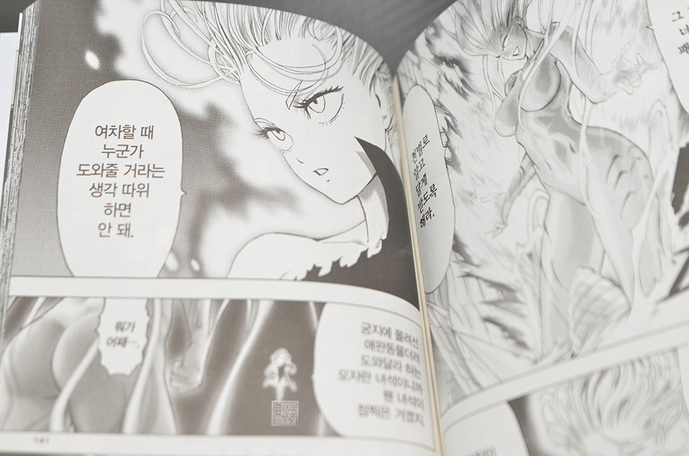 개인적으로 이번 싸움에서 사이타마가 활약하는 장면이 있을지 무척 궁금한데, 만화 <원펀맨 27권>을 읽어 본다면 사이타마가 무대에 오르는 데에는 조금 더 시간이 걸릴 듯했다. 아니, 애초에 사이타마가 무대에 오르기 전에 사이코스를 상대하는 타츠마키가 순수하게 힘으로 그녀를 압도하고 있다 보니 차례가 없을 것 같기도 했다.