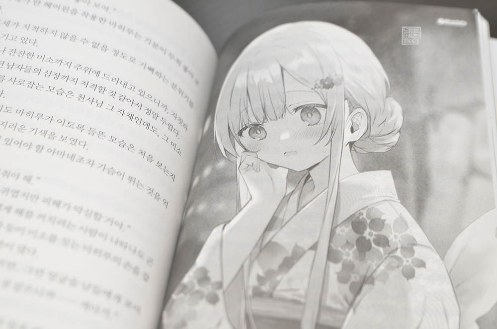 라이트 노벨 <옆집 천사님 6권>은 지난 5권에 이어서 아마네의 본가에서 여름방학을 만끽하는 아마네와 마히루 두 사람의 모습을 그리고 있다. 아마네와 마히루 두 사람은 지난 5권에서 있었던 작은 사건 이후 더욱 거리가 가까워져 있었는데, 5권에서 읽을 수 있는 두 사람의 모습을 보고 있으면 정신이 아찔해질 정도로 너무나 달달했다.