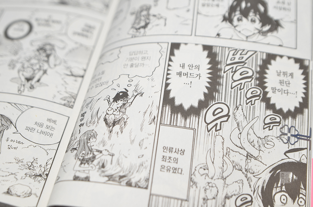 이번에 대원씨아이에서 상당히 흥미로운 배경을 가지고 있는 러브 코미디 만화가 한 권 발매되었다. 만화의 제목은 <첫 러브 코미디 오가베베>로, 만화의 표지를 본다면 우리가 흔히 볼 수 있는 러브 코미디의 무대가 되는 평범한 중·고등학교 혹은 이세계가 아니라는 것을 알 수 있다. 이 작품은 무려 '구석기시대'를 이야기의 배경으로 하고 있었다.