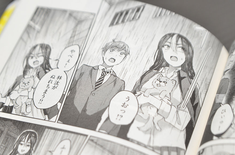 그리고 만화 <갸루쌤 6권>에서는 새로운 인물이 한 명 등장한다. 그 인물은 위 사진에서 볼 수 있는 작은 강아지 한 마리를 데리고 있는 '양키'라고 말하는 캐릭터의 분위기를 지니고 있는 '이누이 마호'다. 이미 이름부터 '이누(犬:개)'가 들어가다 보니 강아지와 함께 등장하는 건 필연이었는데, 여기에 엎친 데 덮친 격으로 비까지 쏟아지게 된다.