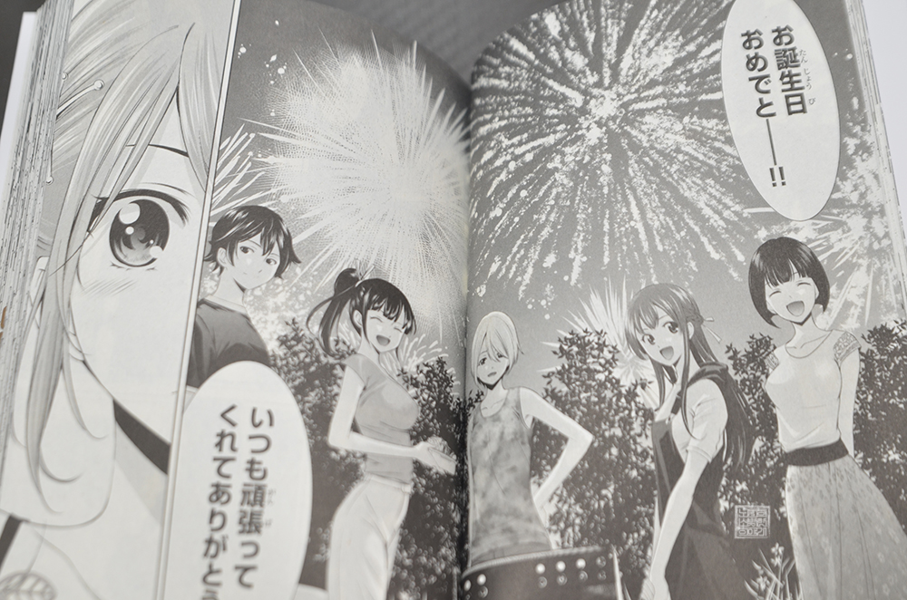 결국, 모두 함께 오봉을 보내게 된 만화 <여신의 카페테라스 4권>은 리호의 생일을 맞아 깜짝 생일 파티를 준비해 리호를 축하하는 모습으로 이어진다. 생일이라고 해도 늘 혼자서 책을 읽거나 애니메이션을 보면서 보내는 게 전부인 나는 가끔 만화와 애니메이션을 통해 친구들과 함께 생일을 즐기는 모습을 보고 있으면 마음이 싱숭생숭하다.