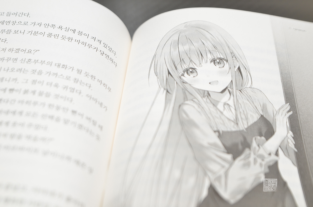 그 결말을 라이트 노벨 8권의 첫 장부터 읽어볼 수 있었는데, 라이트 노벨 <옆집 천사님 때문에 어느샌가 인간적으로 타락한 사연 8권>은 절대 어려운 이야기가 아님에도 불구하고 페이지를 넘기는 일이 너무 힘들었다. 특히, 8권의 첫 장에서 읽어볼 수 있는 아마네의 집에서 하룻밤 자고 가기로 한 마히루가 보여주는 모습이 너무 매력적이었다.