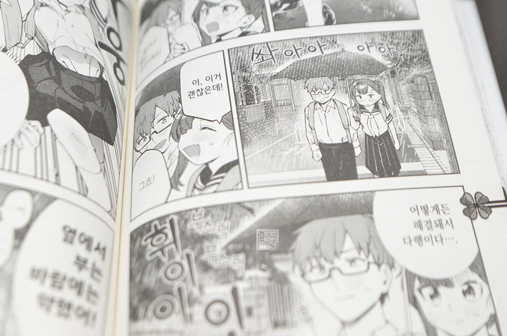 주인공과 코토부키 두 사람은 비 오는 날에 함께 우산을 쓰고 하교를 하게 되는데, 주인공이 지닌 한쪽이 길고 한쪽이 짧은 독특한 우산 덕분에 만들어지는 해프닝이 무척 재밌었다. 이렇게 학교의 선후배 혹은 이성친구와 우산 하나를 함께 쓰는 건 이야기 속에서는 꽤 매력적인데… 현실에서는 생각보다 불편하고 거리를 애매해서 힘들었다.