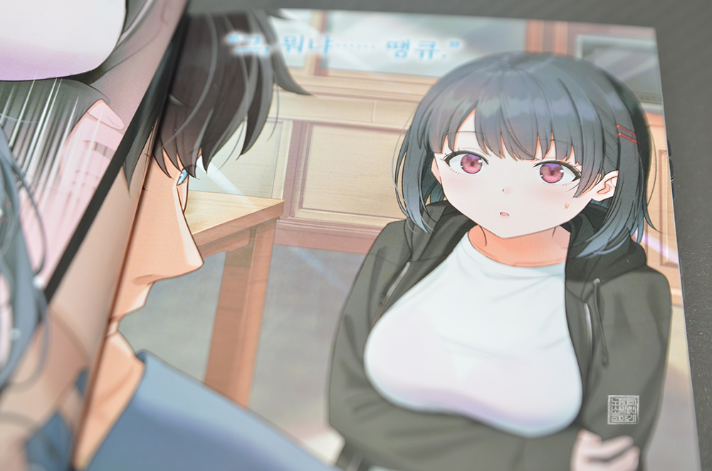 카에데는 주인공에게 자신을 소개할 때 "사실 저는 거유 미소녀 여고생이에요. 심지어 미개봉!"이라고 소개한다. 그녀가 자기소개를 하는 장면에서는 웃음이 터지고 말았는데, 라이트 노벨 <선배, 자택 경비원은 필요 없으신가요? 1권>의 들어가는 글에서 읽어볼 수 있는 주인공 하지메가 품고 있는 여러 결의도 너무 재밌어서 마음에 쏙 들었다.