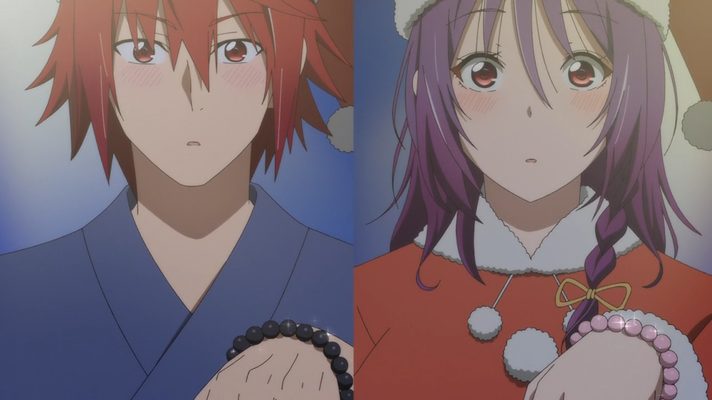 미소녀들과 함께 즐기는 크리스마스 파티는 시작부터 마지막까지 가슴 설레는 이벤트가 그려졌는데, 애니메이션 <템플 8화>에서 아카가미가 유즈키와 단둘이서 선물을 교환하는 장면은 웃음이 지어졌다. 두 사람 모두 염주 만들게 체험을 통해서 만든 염주를 상대방에게 선물하게 된다. 불교에서 염주 교환은 결혼 예물 교환이랑 같은 뜻이었다.