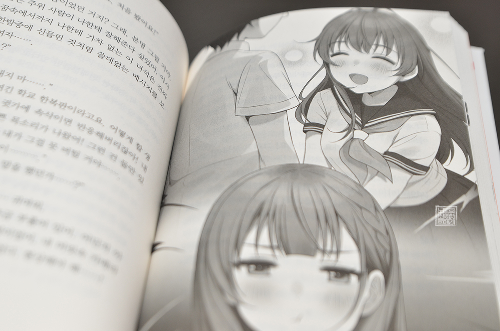 그래서 애니메이션으로 이미 사사키가 여대생이 아니라 여중생이라는 건 알고 있었지만, <꿈꾸는 남자는 현실주의자 3권>을 읽으면서 정말 꿈꾸는 남자의 꿈에 알맞은 상황이 연출되어 웃음만 지어졌다. 이런 모습을 바로 곁에서 본 나츠카와와 아시다 두 사람이 감정 없는 눈이 되어버린 일러스트와 묘사도 아주 매력적으로 잘 그려져 있었다.