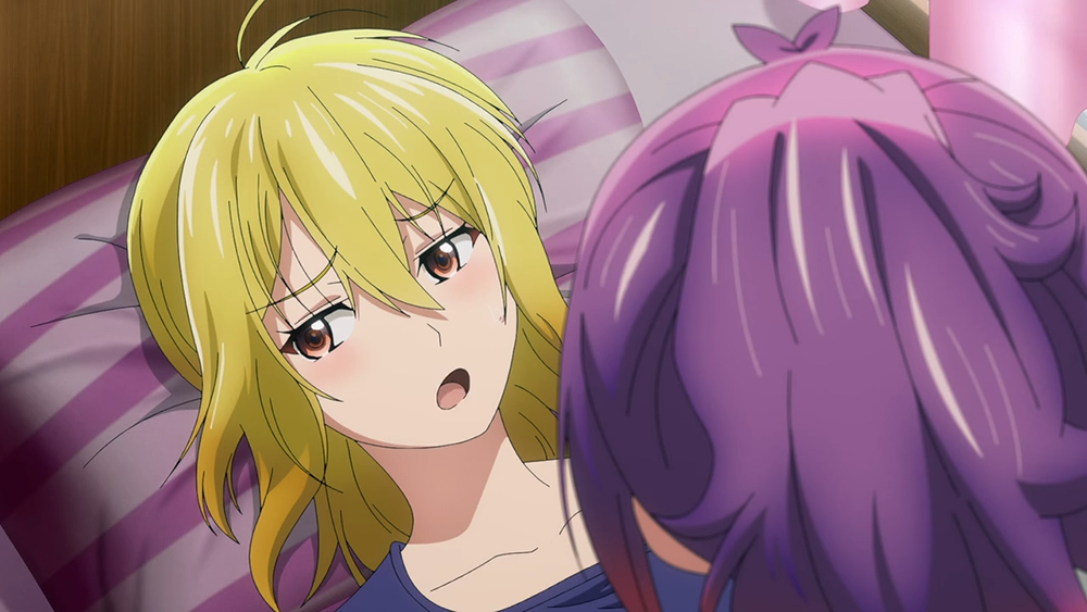 하지만 애니메이션 <템플 10화>의 본격적인 시작 장면이라고 말할 수 있는 츠쿠요의 시점에서 그려지는 이야기는 대단히 재밌었다. 츠쿠요가 잠꼬대를 하다가 쿠라게에게 키스를 한 뻔한 상황 속에서 쿠라게가 힘을 주어서 버티는 모습도 웃겼는데, 미아와 허물없이 지내는 아카가미의 모습을 보면서 초조해하는 츠쿠요의 모습도 좋았다.