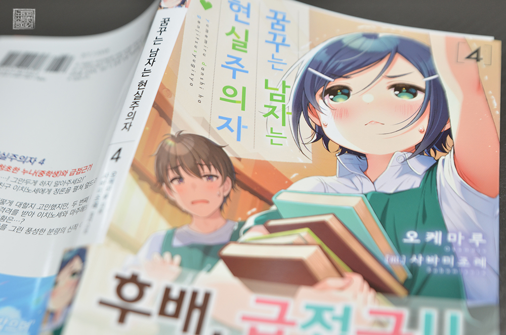 라이트 노벨 <꿈꾸는 남자는 현실주의자 4권>은 그렇게 나츠카와의 집에서 아이카와 아이리 두 자매가 보여주는 귀여운 모습에 주인공 사죠 와타루만 아니라 책을 읽는 독자까지 행복을 만끽할 수 있어었다. 그리고 이어진 이야기에서는 사죠가 방학을 맞아 아르바이트를 하는 헌책방에서 함께 일하는 동급생 이치노세가 중심이 된다.