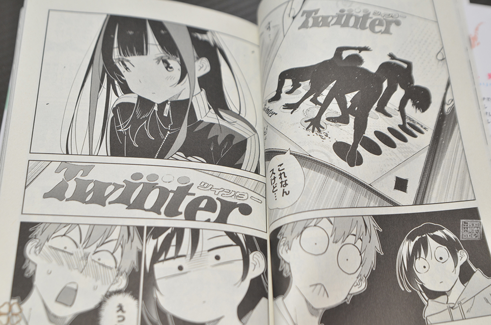 당연히 치즈루와 카즈야 두 사람은 "하아!?"라며 당황할 수밖에 없었는데, 카즈야는 내심 하고 싶어 하면서도 미즈하라의 눈치를 보았다. 완강히 거절할 것 같았던 미즈하라가 게임에 잠시 동안 어울리는 걸 승낙하게 되면서 아주 재미있는 장면이 만화 <여친 빌리겠습니다 33권>에서 그려졌다. 이야, 역시 트위스터 게임은 멋진 게임이었다!