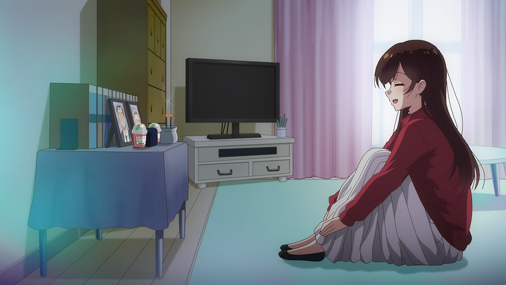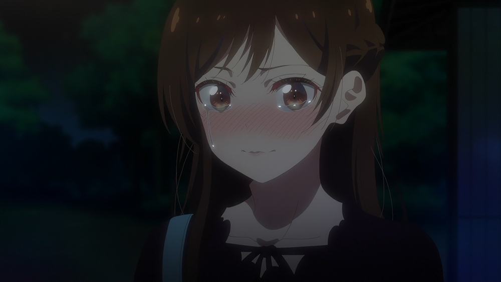 그리고 그 계기 중 하나가 되는 게 바로 애니메이션 <여친 빌리겠습니다 3기 12화>에서 그려진 미즈하라가 꾹 참고 있던 울음을 터트리는 장면이다. 주인공이 혼자 울먹이는 미즈하라의 뒷모습을 보고 어떻게 해야 할지 전전긍긍하다 어렵게 꺼낸 "내 이상적인 여친은 정말 슬플 때는 아주 가끔 울기도 해."라는 말이 미즈하라의 마음을 흔들었다.